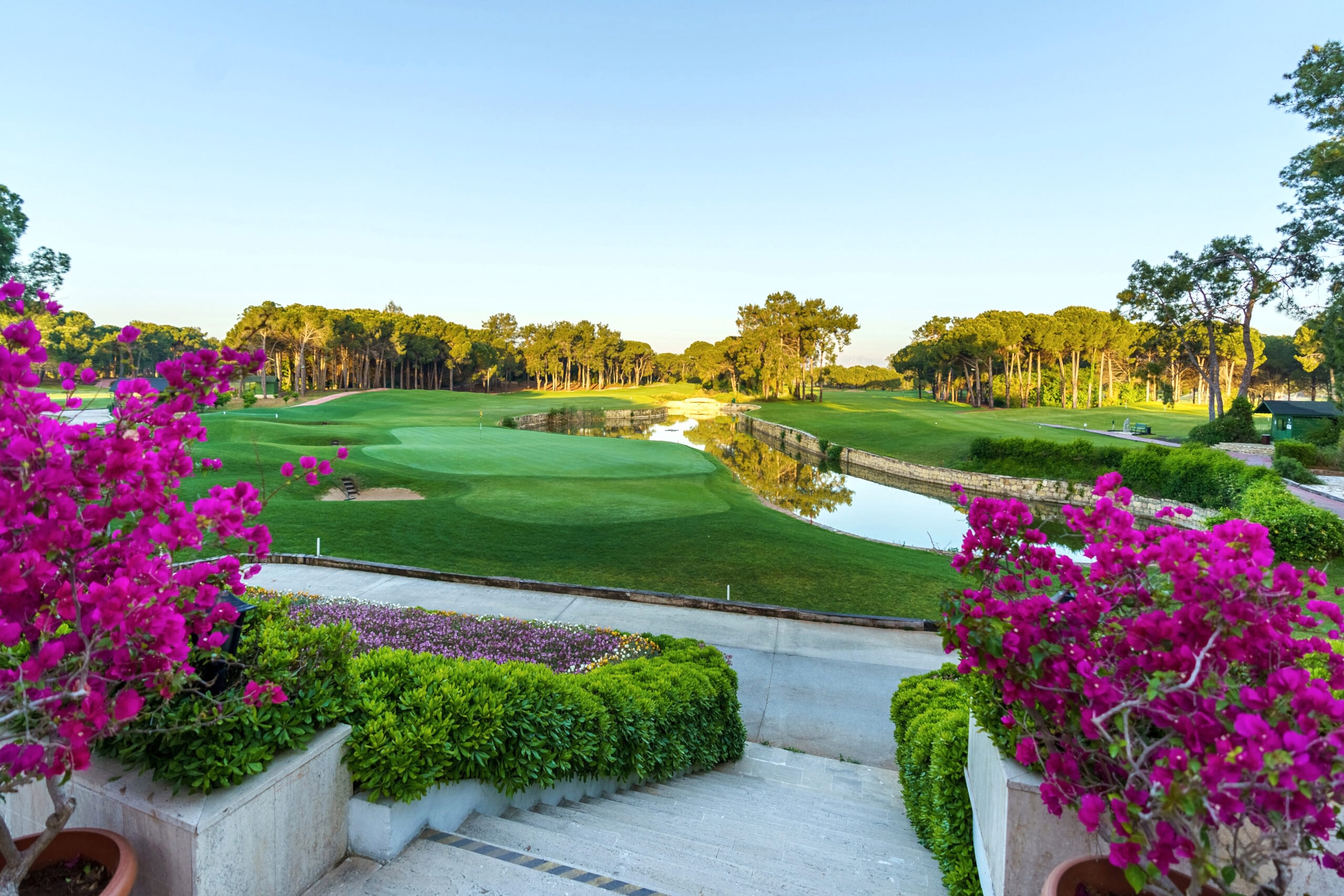 The bar, conveniently located near the restaurant, allows you to enjoy your drink in the comfort of the clubhouse or soak up the sunshine on the terrace, offering a spectacular view of the final hole. A wide selection of Turkish and international wines and spirits is available, making it the perfect spot to unwind after a round of golf.